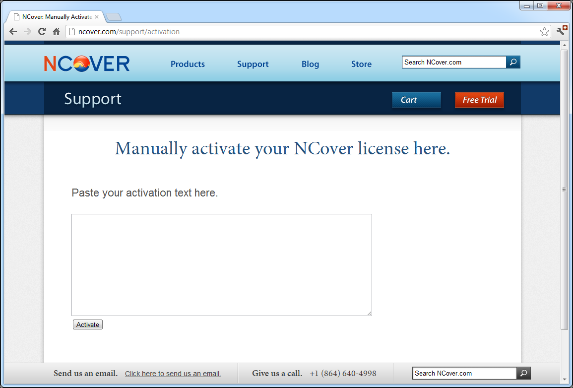 From a machine with an internet connection, go to the NCover license activation web page (http://www.ncover.com/support/activation).