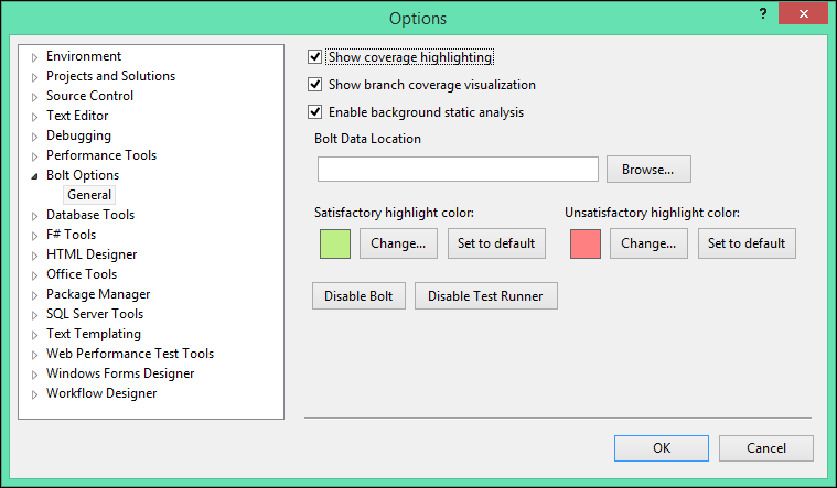 Note: The Bolt Code Coverage window displays coverage results for the most recent successful test run only.